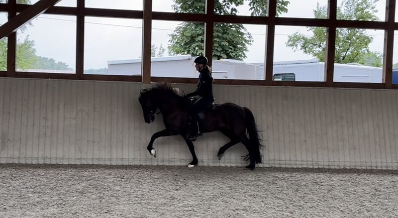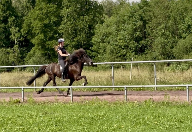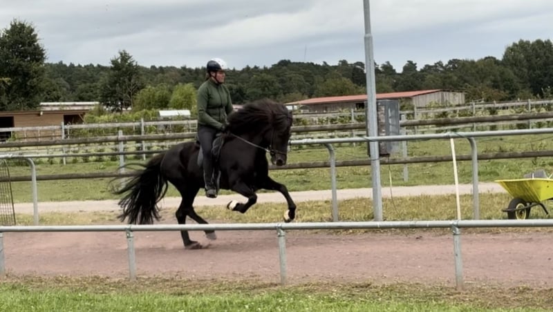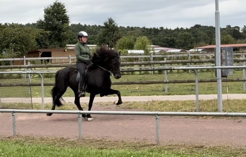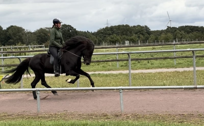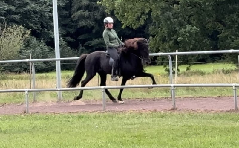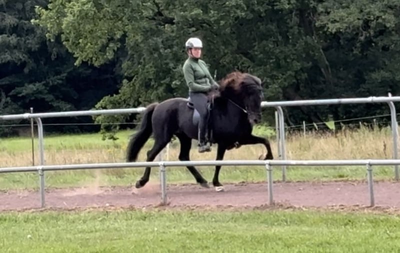 Kolgríma vom Neddernhof *2016 in Deutschland 1.45 m V: Tígull fra Kleiva (FIZO 8.44, Ehrenpreis für Nachkommen) VM: Kopernikus vom Heesberg (FIZO 8.35) Kolgríma ist eine wunderschöne extrem talentierte Fünfgangstute, deren Potenzial noch lange nicht ausgeschöpft ist. Kolgríma wurde das letzte Jahr im Zuge des Pferdewirtschaftsmeisters, mit dem Ziel eine Fünfgangprüfung und T4 zu reiten, sorgfältig und vielseitig ausgebildet. Sie verfügt über ein Top Gebäude und ein sehr vielversprechendes Gangvermögen, welches aber noch weiter gefördert werden muss. Aus zeitlichen Gründen wurde sie vorher noch nicht viel gearbeitet. Kolgríma ist ein sehr elastisches Pferd mit einem weit überdurchschnittlich guten Schritt, viel Tölt und sehr guten Grundgangarten. Im Trab hat sie unter dem Reiter manchmal noch Balanceprobleme. Der Pass befindet sich noch am Anfang der Ausbildung, lässt sich aber zuverlässig legen und schon gut reiten. Bei sehr angenehmem Temperament, steht sie sehr gut an den reiterlichen Hilfen und ist äußerst fein ohne übersensibel zu sein. Bei zu viel Druck, kann sie sich etwas fest machen im Rücken, weshalb sie einen eher einfühlsamen Reiter benötigt, der eine gute Technik besitzt und Kolgríma mit viel Spaß bei der Sache arbeitet ohne sie zu sehr unter Druck zu setzen. Denn dann macht sie gut mit, ist motiviert und macht einfach Spaß! Mit weiterem Training ist Kolgríma sicherlich für die hohen Leistungsklassen geeignet! Im Gelände ist sie immer sicher unterwegs und kennt es, Jungpferde als Handpferde zu begleiten. Vom Boden aus wurde sie vielseitig und gut ausgebildet, kennt Doppellonge, klassische Handarbeit etc.. Auch aufgrund ihrer spannenden Abstammung ist Kolgríma sicherlich für die Zucht interessant! Ihre Vollschwester war bereits erfolgreich (über 7) im Sport unterwegs und ist Elite (8.15) geprüft. Kolgríma ist eine vielversprechende Stute Kategorie E: 20.000-25.000 Direkt vom Züchter Standort 29614 Soltau Aufgrund von vermehrtem Reittourismus und um diesen den Pferden zu Liebe zu vermeiden, berechne ich eine Pauschale von 40€ pro Termin. Diese wird natürlich bei Kauf erstattet.