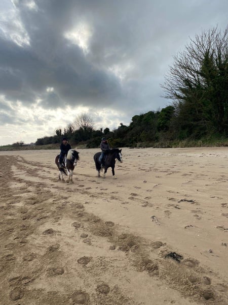 Harry ist ein 14-jähriger Tinker, der in Irland / Donegal gezüchtet wurde. Ich habe ihn die letzten sechs Jahre selbst geritten. Wir haben viele Ausritte gemacht, auch am Strand, im Wald, Longieren, einige Shows in Hand- und Reitklassen, Bodenarbeit und kleine Sprünge. Er ist ein großer, sanfter Kerl, der es liebt, gestriegelt zu werden. Er ist äußerst freundlich zum Hufschmied, lädt problemlos in den Pferdeanhänger, ist an landwirtschaftliche Geräte gewöhnt, lebt in einer Herde und kennt den Umgang mit anderen Pferden. Er hat vorbildliche Manieren, ist gewöhnt ans Kämmen und Anlegen von Decken. Harry ist ein Tinker, den man nur schwer findet, und aufgrund seiner Größe erfüllt er viele Wünsche. Aufgrund familiärer Veränderungen habe ich die traurige Entscheidung getroffen, ihm ein neues, dauerhaftes Zuhause zu suchen. Mir fehlt einfach die Zeit für ihn.