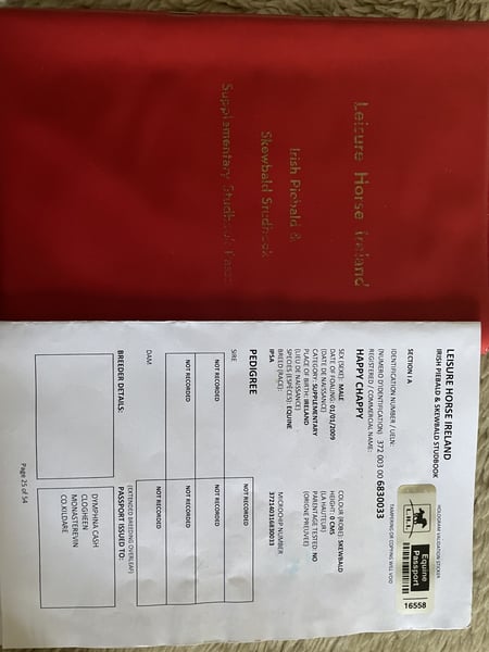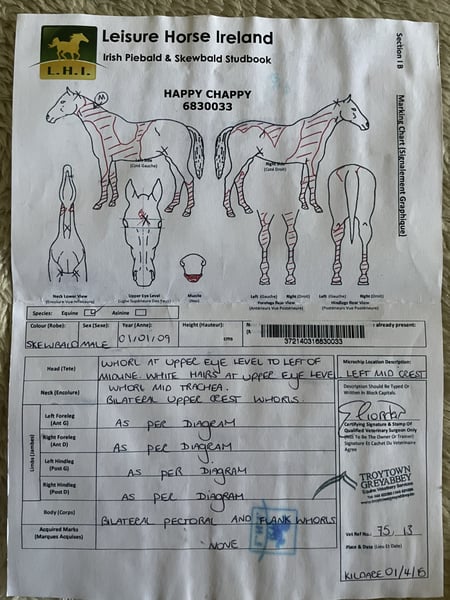 Srokaty wałach Irish COB , irlandzki paszport