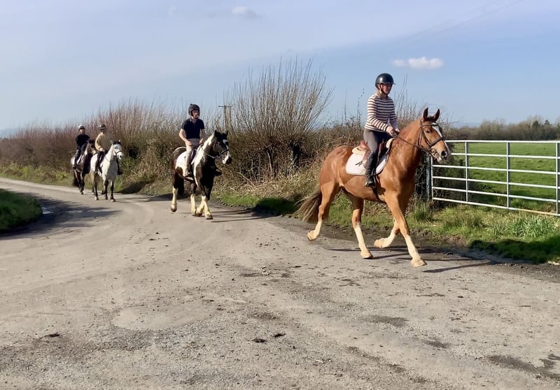 🌟 Theo – Striking 4YO 15.2hh Chestnut Gelding 🌟 • Eye-catching 4-year-old, standing at 15.2hh show quality • Beautiful rich chestnut with standout markings – guaranteed to turn heads wherever he goes! • Traditional draught cross type with plenty of presence and character • Genuine, honest and straightforward temperament • Fun ride with a lovely snaffle mouth • Willing attitude – always eager to please • Takes everything in his stride with a calm, level-headed nature • Hacks out confidently both alone and in company • Suitable for riding club activities or someone looking for an enjoyable all-rounder • Kind, friendly gelding with a great personality • Easy to shoe, box, and clip • No stable vices • Good to handle on the ground and under saddle • A pleasure to have around the yard • Ideal riding club horse • Perfect for fun rides, hacking, and general all-round enjoyment • Would suit a variety of riders looking for a safe and enjoyable partner Theo is a striking, flashy draught cross who truly stands out from the crowd. He combines looks, temperament, and rideability, making him a fantastic all-rounder for someone wanting a fun and reliable horse to enjoy. Whether you’re heading out for a quiet hack or taking part in riding club activities, Theo is ready to go and give you a great time. 💰 Price includes delivery to your yard 🔁 Exchange available if you’re not completely satisfied 🎥 Please watch his video 📞 Feel free to call Gerty anytime: 00353 868077626 📧 Email: gertytynan@gmail.com
