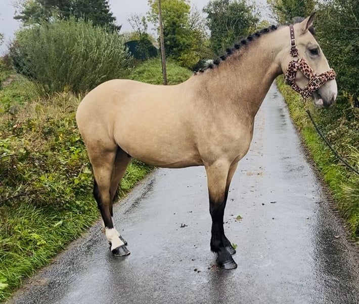 💫 Ich bin Dun Quittin 💫 4 Jahre alter Wallach, 146 cm Wunderschöner goldener Wallach, er ist ein absoluter Hingucker! Mit beeindruckender Präsenz, die alle Begeisterung wecken wird. Professionell ausgebildet und gut unter dem Sattel geritten. Er zeigt gute Bewegungen im Dressurtraining und hat bereits mit kleinen Sprüngen begonnen. Super mutiger, von Natur aus ehrlicher Pony, der stets sein Bestes gibt. Er ist gut im Gelände unterwegs und macht auch im Straßenverkehr eine gute Figur. Ein Pony von ausgezeichneter Qualität mit einem sehr angenehmen Temperament. Es macht große Freude, mit ihm zu arbeiten und ihn weiter auszubilden. Preis: 6.000 € Standort in Sligo, Irland. Bei Bedarf steht ein regelmäßiger professioneller Transport zur Verfügung. Für weitere Informationen oder Videos wenden Sie sich bitte an Edward unter 00353871412129. Alle Anfragen sind willkommen.