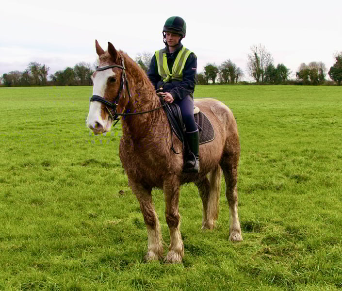 🌟Banjo – 5-Year-Old Traditional Irish Cob Gelding🌟 Banjo is an exceptionally honest and straightforward 5-year-old traditional Irish Cob gelding, just under 15.3 hh. With his rare strawberry roan coat, he is a true eye-catcher. A lovable fellow who is just as much fun at home as he is in the field or jumping. ✨ About Banjo • Age: 2021 • Height: Slightly under 15.3 hh (159 cm) • Color: Rare Strawberry Roan • Breed: Traditional Irish Cob Banjo is a gentle, friendly gelding with a willing, forward-going temperament. Sensitive and calm, yet eager to work and always striving to please his rider. 🏇 Movement & Performance • Three fantastic, relaxed, and straight-moving paces • Excellent rhythm and straightness – ideal for shows • Great fun to jump and cross-country • Confidently jumps up to 90 cm here • Loves jumping ditches, natural obstacles, and cross-country tracks • Perfect for hunting, hunter trials, trekking, and riding schools 🧰 Handling & Character Banjo is extremely well-behaved: • Easy to shoe, load, catch, and ride • Reliable in traffic, whether alone or in company • No stable vices • Always available for veterinary checks 📦 Included in the Price • Delivery directly to your stable within the United Kingdom • Exchange possible if you're not satisfied Banjo is a fantastic, honest gelding who brings immense joy. Scroll down to see his video and feel free to contact us at any time. 📞 Phone: +353 86 807 7626 📧 Email: gertytynan@gmail.com