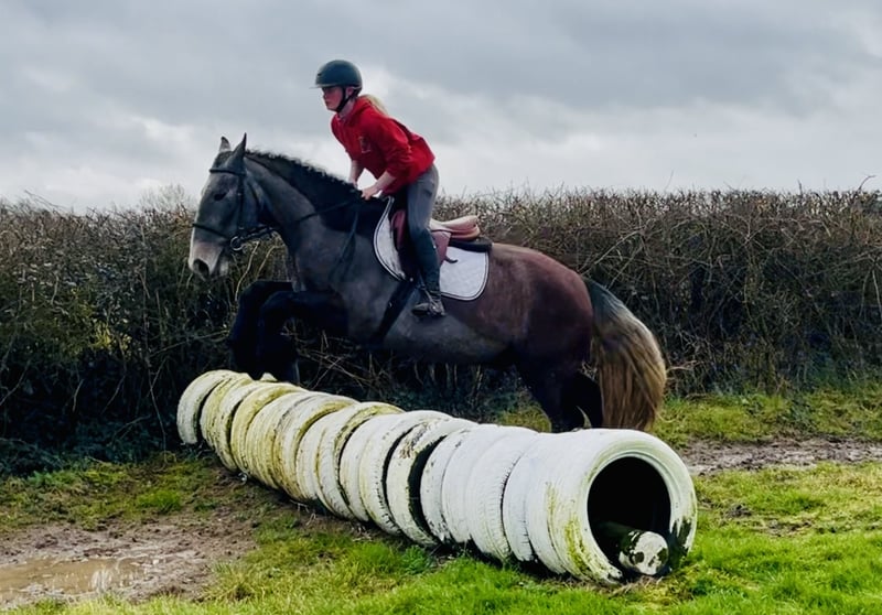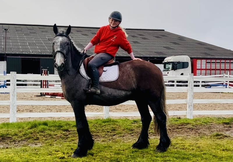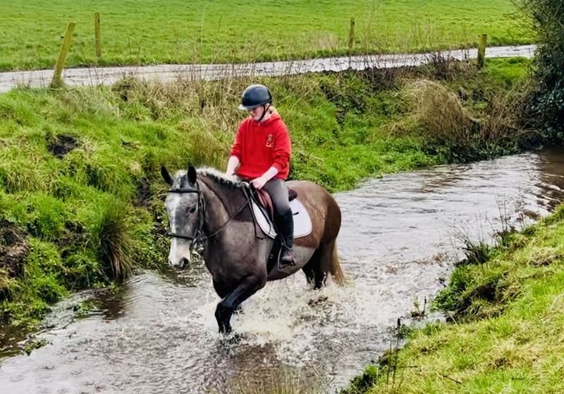 5-jähriger Irish Cob Wallach – seltener Roan – kräftiger, traditioneller Typ George ist ein 5-jähriger Irish Cob Wallach in einer wunderschönen und seltenen Roan-Farbe. Er ist ein echter, traditioneller Typ mit „viel Bein in jeder Ecke“, kräftigem Fundament und guter Knochenstärke. Ein korrekt gebautes, kompaktes Pferd mit freundlichem Ausdruck und einem ausgesprochen angenehmen Wesen. Er ist besonders unkompliziert und leicht zu reiten und eignet sich ideal als Freizeit- und Ausreitpferd, als Mutter-Tochter-Pferd oder auch für den Einsatz im Schulbetrieb. Auf dem Reitplatz ist er ordentlich gearbeitet, geht brav auf dem Zirkel und zeigt sich ausgeglichen und willig. Er vermittelt Sicherheit und ist stets bemüht, alles richtig zu machen. Auch kleine Sprünge machen ihm Spaß. Er wurde über einzelne Hindernisse sowie kleine Parcours und Geländehindernisse gearbeitet und ist hier bis ca. 90 cm mit einem Reitanfänger gesprungen. Dabei zeigt er sich ehrlich und unkompliziert, ohne übermäßig ehrgeizig zu sein. Der Schwerpunkt liegt bei ihm ganz klar auf einem vielseitigen, angenehmen Freizeitpartner. Im Gelände ist George absolut zuverlässig: • Geht alleine oder in der Gruppe ins Gelände • Verkehrssicher • Gelassen auf freiem Feld • Unkompliziert in neuer Umgebung Er bleibt ruhig und kontrollierbar und genießt entspannte Ausritte. Auch im täglichen Umgang ist er absolut pflegeleicht: • Problemlos beim Schmied • Lässt sich gut verladen • Einfach einzufangen • Brav beim Scheren • Im gesamten Handling unkompliziert George ist ein sehr menschenbezogener, freundlicher Wallach mit einem tollen Charakter. Er zeigt keine Stalluntugenden und kann jederzeit tierärztlich untersucht werden. Der Preis beinhaltet die Lieferung zu Ihrem Stall innerhalb des Vereinigten Königreichs. Umtausch ist möglich, falls Sie nicht zufrieden sind. Bitte schauen Sie sich sein Video an und rufen Sie jederzeit gerne an unter 00353 868077626 oder schreiben Sie eine E-Mail an Gertytynan@gmail.com.