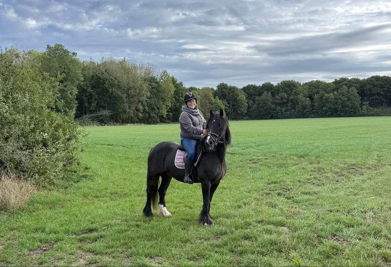 Beautiful Irish Cob mare from Ireland. She stands at 1.53 meters (around 16.1 hh) and is 13 years old. She comes from Ireland where she was used as a broodmare. She is broken but remains sensitive on rides; she is fearless and confident in the field. However, she is more sensitive and challenging under saddle, requiring an experienced rider. Currently, she is not being ridden as she was previously used for a child but proved too difficult for that purpose. A life as a broodmare or as a leisure horse would suit her better. Exchange possible for a more sporty horse or an Irish Cob filly. Price: €4,500, negotiable.