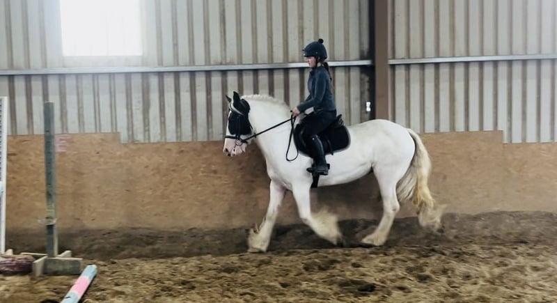 **Na sprzedaż: Oszałamiająca klacz Irish Cob** Poznaj Jill, naszą piękną klacz urodzoną w 2020 roku, o wzroście 153 cm (15hh). Jej urocza osobowość i łagodne usposobienie sprawiają, że jest idealnym towarzyszem dla jeźdźców na każdym poziomie. Niezależnie od tego, czy chcesz startować w zawodach, czy cieszyć się rekreacyjnymi jazdami, jest gotowa podjąć każde wyzwanie z entuzjazmem i wdziękiem. Dzięki swojemu unikalnemu ubarwieniu i atletycznej budowie na pewno przyciągnie spojrzenia wszędzie, gdzie się pojawi. Nie przegap okazji, aby uczynić tę wyjątkową klacz częścią swojej jeździeckiej podróży! Niezwykle odważna podczas treningów w terenie. Z łatwością pokona wszystkie rodzaje przeszkód. Skontaktuj się z nami, aby uzyskać więcej informacji i umówić się na wizytę. Twój następny koński partner czeka! Cena 6500 €. Zlokalizowana w Sligo, Irlandia. Regularny profesjonalny transport dostępny na życzenie. W celu uzyskania dalszych informacji lub filmów prosimy o kontakt z Edwardem pod numerem 00353871412129. Wszystkie zapytania są mile widziane!