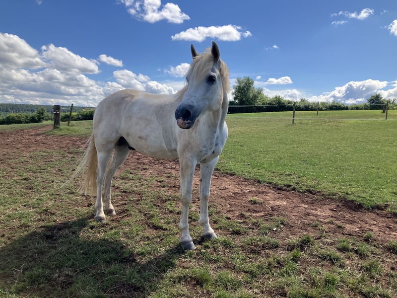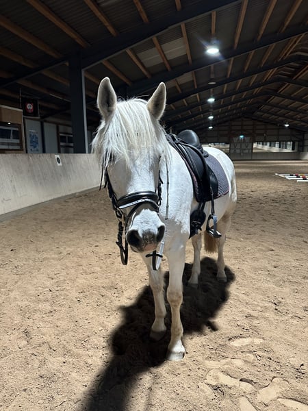For sale is an 11-year-old Connemara gelding with a height of approximately 155 cm. A reliable partner for the higher-level leisure rider! He impresses both in the field and in the arena or indoor riding hall with his dependability and high motivation. Whether a relaxed or spirited trail ride, dressage training at levels A/L, a small jumping course, or simple gymnastic exercises, he loves variety. He willingly and enthusiastically participates in clinics. Trailer loading and farrier work (barefoot) are no problem. Currently, he stays in a box at night and is turned out all day. He is also familiar with 24/7 turnout in a mixed herd. He is stabled on straw. He tolerates hay, grass, silage, and oats. He has learned to respect land machinery, cars, motorcycles, bicycles, dogs, chickens, geese, and cattle. He is cautious around children and generally a very easy-going and lovely horse to handle. Special note: mild allergy, but with good management, symptoms are almost absent. Optional: complete riding and turnout equipment can be purchased together. Vaccinated against herpes and influenza biannually. Registered as a competition horse. Price is negotiable; I am happy to consider reasonable offers. For inquiries, please contact me preferably by phone at 0178/5267555.