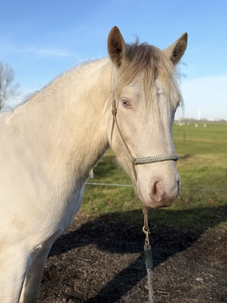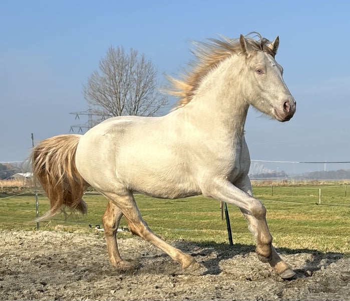 Deze charmante Connemara ruin is een prachtige jonge pony met veel bekijks! Hij is Geboren in 2023, en heeft momenteel een stokmaat van 147 cm, is hij perfect geschikt voor allround gebruik. Hij is Goed allround gefokt , met een prachtig Iers bloedlijn. Zijn opvallende Cremello kleur geeft hem een bijzondere uitstraling en maakt hem een echte eye-catcher. Deze jonge pony is goed socialized en heeft een vriendelijke, nieuwsgierige aard. Hij is nog volledig groen , toont wel al veel talent en bereidwilligheid om te leren. Dankzij zijn gemakkelijke leergierig karakter en goede basisconditie is hij ideaal voor ruiters die een betrouwbare en gezellige pony zoeken voor als allrounder te gaan rijden. Kortom, een veelbelovende Connemara ruin met een zeer speciale kleur in zijn rassoort! En een zeer vriendelijke instelling, is hij zeker klaar om verder opgeleid te worden tot een fijne metgezel voor allround gebruik. Een unieke kans voor ruiters die wil investeren in een jonge, veelbelovende pony met een karakter om enorm van te houden! ⚜️Een Droompaard voor heel veel paardenliefhebbers! ⚜️ Whatsappje gaat het snelst : +31645866198 HWDS Negatief! ✔️5-12-2025 hoefsmid ✔️4-12-2025 klinisch gekeurd ( mooi omschreven) ✔️29-01 wormenkuur equest Pramox
