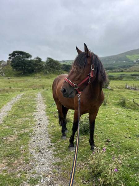 Beara Fionn is a well-built 3.5-year-old Connemara gelding (currently 14.0 hh, still growing). He has been under professional saddle for four weeks, having previously undergone extensive groundwork and Natural Horsemanship training. He has been ridden for four weeks and lunged for a longer period. He is familiar with riding in company and has experience in the terrain. Fionn is brave, eager to learn, and well-balanced. Since birth, Fionn has been raised on our farm; he is accustomed to sheep, cows, and donkeys, and has grown up within a herd. Due to farm life, he is used to loud machinery and tractors and is very people-oriented (farm walks with our guests). His mother and half-siblings can also be viewed here. Fionn is barefoot, stands well for the farrier, loads easily, and stands securely and relaxed in the box during transport. He is regularly dewormed. The last dental care was performed in early November 2025. HWSD: N/N ⸻ Outstanding Pedigree Class 1 across all generations in the passport Father: Knockbridge Mozart – son of the legendary Carnabay Mirah (top sport breeding stallion worldwide), Westside Mirah (international show jumping sire with European Championship offspring) In the sire line: Grange Sandy – performance ponies with great ability Templeready Boy – hindquarter strength & jumping power Mother: Beara Princess, daughter of Kippure Mo Cuishle – ridden family & sport ponies Monaghanstown Fred – classic type, strong conformation, excellent character Tobar Árann – traditional Connemara with substantial bone and strength This lineage combines athleticism, intelligence, and the true Connemara type ideal, and Fionn exhibits exactly that. ⸻ Character & Suitability ✔️ Good walk/trot/canter ✔️ Alert but not overly energetic ✔️ Confident in the terrain when accompanied ✔️ Cooperative and clear-minded ✔️ Shows great potential in free jumping Future prospects include show jumping, eventing, or as a family pony. Currently still green and inexperienced, but very eager to learn and cooperative – ideal for someone who wants to shape their own pony. 🇮🇪 Location: West Cork, Ireland 💌 Transport can be arranged 📎 Pedigree & videos available upon request