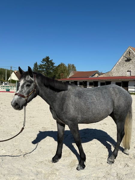 Poney pp Connemara 4 ans, 1m44 (sport ou loisir) Top origine et éleveur (Padraic Hynes) Par GOUREMORE DIAMOND et CANAL LINNETT Superbe poney en devenir au mental en or (gentil, curieux, joueur et proche de l'homme), Canan se démarque par son bel équilibre naturel, sa force, et son amplitude. Très bien mis aux trois allures, léger et très bonne bouche, Canan est un poney à l'écoute de son cavalier. Il saura faire plaisir à son cavalier. Il a déjà effectué du club avec des enfants, adolescents et adultes à partir d'un galop 2 encadré. Il est adoré par les cavaliers de tout âge de par son côté attachant et facile. Il enchaîne un parcours à 90cm et a été testé sur 1m15 en liberté. Canan a également effectué plusieurs petits parcours de hunter et se montre volontaire et bon élève. Il a participé à une warm up ainsi qu'à un premier concours sur les circuits jeunes poneys. Il a démontré de très belles choses et une attitude exemplaire. Potentiel AS2 en continuant le travail et en respectant sa croissance. Il vit actuellement en boxe / paddock avec des copains. À jour vaccins ✅ Marechal, dentiste, ostéopathe ✅ Tonte ✅ Transport ✅ Sort en extérieur seul ou accompagné.
