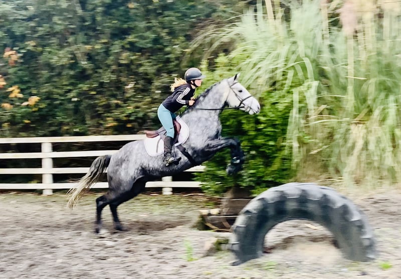 Finn – reinrassiger Connemara Wallach, 15.1hh (ca. 1,55 m) Finn ist ein wunderbarer, ruhiger und außergewöhnlich ehrlicher Connemara Wallach, der sich besonders durch sein hervorragendes Temperament, sein Talent und seine Arbeitsbereitschaft auszeichnet. Der aufstrebende fünfjährige Wallach steht bei 15.1hh (ca. 1,55 m) und besticht durch seine schöne Erscheinung. Mit seiner ruhigen und zuverlässigen Art eignet er sich hervorragend als ideales Anfängerpferd, ein verlässliches Mutter-Tochter-Pferd oder als sichere und vielseitige Ergänzung für eine Reitschule. Finn ist in jeder Hinsicht eine Freude. Er verfügt über drei gleichmäßige, ausgewogene und ausdrucksstarke Gangarten und ist sowohl in der Dressur als auch im Springen gut ausgebildet. Er hat einen tollen, ehrlichen Sprung und gibt stets sein Bestes — er ist der Typ Pferd, der immer darauf bedacht ist, seinem Reiter zu gefallen. Finn wurde bereits von einem 14-jährigen Mädchen auf der Jagd geritten und meisterte jede Situation mit Bravour, zeigte sich mutig, vernünftig und sehr brav im Umgang mit anderen Pferden. Wie es sich für einen Connemara gehört, hat Finn ein wunderbares Wesen — er ist freundlich, liebenswürdig und unkompliziert, sowohl im Stall als auch unter dem Sattel. Er ist ruhig zu reiten, leicht zu beschlagen, zu verladen, zu fangen und im Straßenverkehr zu handeln. Auch an landwirtschaftliche Maschinen oder belebte Umgebungen gewöhnt er sich schnell und bleibt völlig unbeeindruckt. Finn ist ein echtes Steady Eddie, das Vertrauen schenkt, ganz gleich, welche Aufgabe gerade ansteht. Finn stammt aus hervorragender Zucht. Sein Vater ist Lough Melvin Gorteen, seine Mutter stammt von Abbeyfort ab und ist aus Aran Flight gezogen. Er hat keine Stallmängel und hat kürzlich eine einwandfreie 5-Stufen-Tierärztliche Untersuchung bestanden. Für zusätzliche Sicherheit ist er offen für eine erneute Untersuchung. Der Preis beinhaltet die Lieferung zu Ihrem Stall im gesamten Vereinigten Königreich, und ich bin mir sicher, dass Sie ihn lieben werden – falls nicht, biete ich einen Umtausch an. Schauen Sie sich gerne das Video an und rufen Sie mich jederzeit an unter 00353 86 8077626 oder senden Sie eine E-Mail an gertytynan@gmail.com für weitere Informationen.