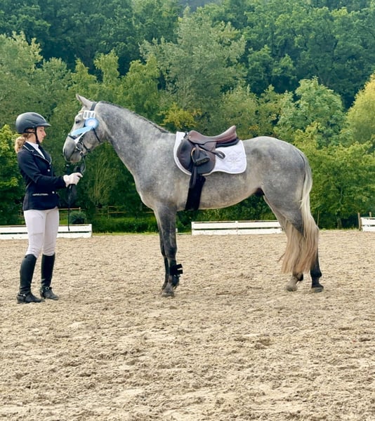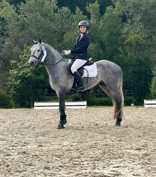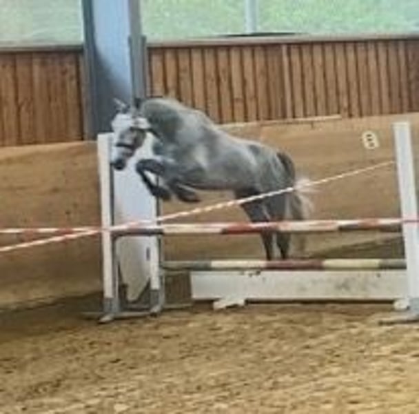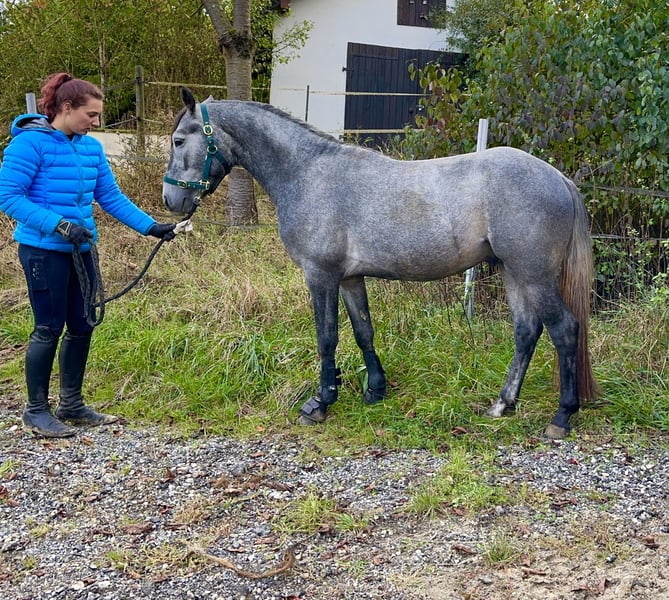 Lisbergs Prince Philip Lisbergs Prince Philip wurde am 10.04.2021 bei uns auf dem Gestüt geboren. Philip wurde um 5.16 h morgens als Rapp-Schimmel geboren. Seine Mutter Mask View Molly ist eine gut ausgebildete Connemara Stute, die bevor sie zu uns gekommen ist aktiv im Niederländischen Ponysport im Springen von der kleinsten Klasse bis 2 Sterne A und bis A in der Dressur unterwegs war. Sie führt seltenere Blutlinien in sich und verfügt über das beliebte Glencarrig Prince Blut, Ballyard Prince Blut und Rocklands Prince mit Hazy Dawn Blut! Lisbergs Prince Philip’s Vater Pattys Veuve Cosmic ist Hannoveranisch gekört, Bayrisch anerkannt und Süddeutsch gekört, er kann beste Blutlinien vorweisen und eine überdurchschnittliche Leistungsprüfung mit 8,2 absolviert! Ausserdem ist er ein erfolgreiches Turnierpony und ein braves Fahrpferd und hat inzwischen Weltweit Kinder- und Enkelkinder. Lisbergs Prince Philip wuchs sehr behütet auf unserem Gestüt erst mit seiner Mutter im Laufstall, später in einer altersgemischten Hengst- und Wallachherde. Seit er ein Fohlen ist regelmässig, entwurmt und geimpft mit Tetanus, EHV1,4( Herpes) und Pferdeinfluenza. Er war noch nie krank, Zähne wurden regelmässig kontrolliert. Philip wurde behutsam anlongiert, dann angeritten und er absolvierte im September 2025 seine 2-Tage-Kurzzeitprüfung auch Leistungsprüfung genannt mit 6,93. Das heisst er wurde im Freispringen geprüft, wurde in einer Dressuraufgabe geritten plus 1. Fremdreitertest, absolvierte am nächsten Tag einen Springparcours plus weiteren 2. Fremdreitertest. Philip ist am 22. November auf der Körung vorgestellt worden und wurde dort nicht gekört, da er mehr im Sportpony-Typ steht. Daher gibt es nun einen im Pony-End-Mass stehenden bald 5jährigen Wallach zu verkaufen. Zur Körung wurde er tierärztlich untersucht inklusive Beugeproben und Zähnen, er wurde bisher nicht geröntgt, dass kann im Rahmen einer Ankaufsuntersuchung dann der evtl. neue Besitzer machen lassen. Aktuell mehrfach gemessen 1,47 m gross. Philip wurde erfolgreich am 20.01.2026 kastriert. Lisbergs Prince Philip eignet sich hervorragend für den Ponysport oder für schon gut reitende Jugendliche oder zierliche erwachsene Reiter. Philip ist in der Dressur und im Springen auf dem Weg zu A, durch die Leistungsprüfung Ende September bestätigt. Er kennt ausreiten, etwas Hallensport( muss mit mehreren Reitern in der Halle noch geübt werden) kennt Waschbox, Einflechten, Solarium, Transporter- und Anhänger fahren, auch längere Strecken, Reitplatz, verschiedene Stallanlagen zum trainieren, hat keine Unarten und ist brav im Umgang und bleibt artig im Auslauf. Aktuell wartet Lisbergs Prince Philipp auf seinen Kastrationstermin, der leider wegen Krankheit des Tierarztes und Notfällen mehrfach ausfallen musste. Sollten Ihnen Lisbergs Philipp gefallen, wenden Sie sich bitte direkt an die angegebenen Nummern aus der Anzeige und geben Sie bei einer email Ihren Namen und Ihre Mobilrufnummer an- gerne können Sie uns auch direkt über Whatsapp unter 00491713415878 kontaktieren, in unserem schönen Ort funktioniert das mobile telefonieren leider nicht oder nur sehr schlecht! Das komplette Pedigree finden Sie in den Dokumenten wieder, da ehorses häufig Teile der Abstammung verschluckt. Pro Besuch auf unseren Betrieb erheben wir eine Kennenlern-Pauschale von 50€ und 70€ an Sonn- und Feiertagen müssen vorab bei Ankunft in Bar entrichtet werden! Liebe Grüsse und vielleicht bis bald - Gestüt Lisbergs ist immer eine Reise wert! Vielen Dank für Interesse! Ihr Gestüt Lisbergs