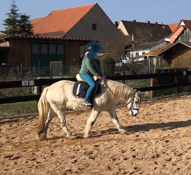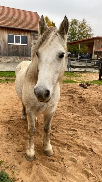 Verkaufe schweren Herzens meine 13 jährige Connemara-Tinker-Mix Stute mit einem Stockmass von 1.45 cm. Lucy läuft brav auf dem Platz und im Gelände, alleine und in der Gruppe. Sie kennt Offenstall, Box mit Paddock und im Sommer stand sie auf der Koppel. Wobei man hier ein bisschen aufpassen muss da sie leichtfuttrig ist. Sie kann einige Zirkuslektionen und kennt Bodenarbeit. Lucy deckt auch leichte Erwachsene gut ab. Sie wurde beim Vorbesitzer gefahren. Bei Interesse gerne auch anrufen 01624176079 oder WhatsApp schreiben. Fürs probereiten nehme ich 25 Euro die beim Kauf natürlich wieder verrechnet werden.