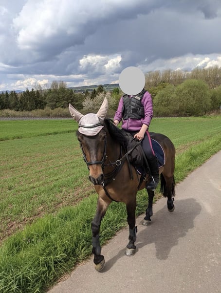 Zum Verkauf steht eine charmante Connemara-Stute geboren: 2013 Stockmaß: 147cm Sie ist ein echtes Herzenspony: kinderlieb, brav im Umgang und für nahezu jeden Spaß zu haben – dabei stets ehrlich und verlässlich. Sie ist eine gute Lehrmeisterin. Auf dem Platz oder in der Halle will sie geritten werden, ist aber immer absolut brav. Im Gelände ist sie eine Lebensversicherung, geht überall hin, egal ob allein oder in der Gruppe, sie kommt mit Kind immer wieder heil Zuhause an. Turniere kennt sie, dort ist sie allerdings meist etwas schüchtern. Das Pony ist WBO—Prüfungen (Dressur, Springen und Vielseitigkeit), E—Springen und E—Dressur gegangen. Sie wird nur wegen Umstieg auf Großpferde abgegeben. Wir suchen ein liebevolles Zuhause für sie, in dem sie geschätzt wird und weiter Freude bereiten darf. Platz vor Preis.