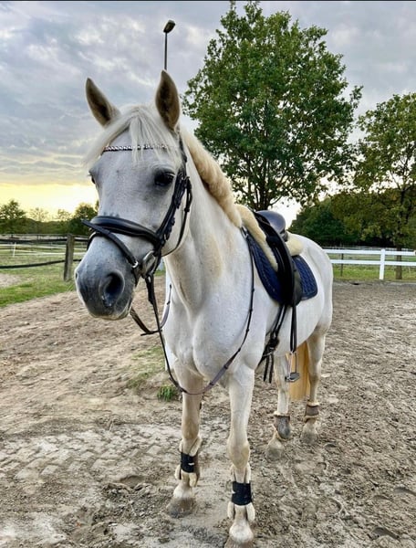 Our beloved Rose is looking for a new, suitable home. She is a 14-year-old reliable end-sized pony mare and a true sweetheart in handling. For someone with some riding experience who "knows how to ride," she is an absolute dream pony. ✔ Character & Handling Rose is incredibly gentle, affectionate, and easy to handle. She is comfortable with farriers, vets, and trailer loading—all done without stress. She is perfectly well-behaved during handling and can be confidently led by small children. ✔ Riding & Suitability Rose can be ridden both alone and in a group. At competitions, she has only been shown in lead-rein classes with us—and she was always very successful and super well-behaved! She is ideally suited for children or young adults (the girl riding her is 1.75 m tall) who are confident in handling ponies and already riding independently. For complete beginners, she may not be the best choice on her own, as she can have a bit of "go." It would be optimal if she is occasionally ridden by an experienced rider as well. ✔ Health Currently vaccinated Teeth recently floated Veterinarian checked She has been treated once on the hind leg; a spat was found in her hock but was deemed harmless by the vet. Since the treatment (over a year ago), everything has been fine. ✔ Additional Information Rose has already had a healthy foal with her previous owners. Rose is the ideal family pony for advanced children or young riders seeking a reliable, loving partner pony. However, she is not a pony for absolute beginners! She also had a foal about two years ago. Price: €6,000 negotiable. If you are genuinely interested, we look forward to hearing from you and arranging a meeting!
