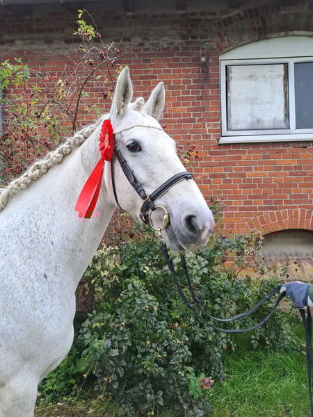 **Verkaufsanzeige: Connemara-Mix-Stute – Deine neue Freizeitbegleiterin** Zum Verkauf steht eine freundliche Stute, geboren im Jahr 2010, die aus Irland importiert wurde. Sie ist eine elegante, weiße Stute mit einem Stockmaß von 155 cm, die sich für den Freizeitbereich bestens eignet. Die Stute braucht erfahrene Hände und Sicherheit beim Reiten. Ich habe die Stute vor fünf Jahren aus privater Haltung gekauft. Dort war sie bloße Beistellerin und wurde durch mich und erfahrene Berufstrainer ausgebildet bis A-Niveau in der Dressur. Außerdem hat sie Springvermögen und bringt Spaß im Gelände. Ich suche für sie ein neues Zuhause, da ich ihr nicht mehr gerecht werde, sie möchte jemandes Lieblingspferd sein. Hier ist sie kein Einzeltier. Das Pferd ist sehr lernwillig und möchte vielseitig gearbeitet werden. Toll vom Boden in diversen Disziplienen (Gelassenheitstraining, Longe, Doppellonge, Zirzensik, Bodenarbeit/ Horsemanship) beim Reiten braucht sie klare Führung und einen sicheren Reiter. Ihre robuste Konstitution und ihr angenehmer Charakter machen sie zu einem idealen Partner für ausgedehnte Gruppenausritte, Spaziergänge im Gelände oder auch für entspannte Stunden auf dem Reitplatz. Sie ist regelmäßig geimpft, entwurmt und dem Hufschmied vorgestellt. Diese feine und sensible Stute ist leider nicht für Anfänger geeignet. Weiteres sehr gerne persönlich. Es ist ein ganz tolles Pferd und ich gebe sie auch nur in ein 5* Zuhause. Interessiert? Kontaktieren Sie uns gerne für weitere Informationen.