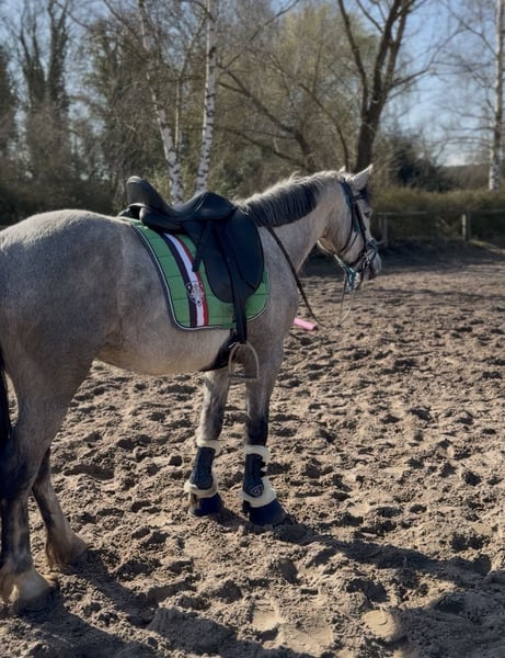 Liberty This incredibly adorable mare is looking for her dream home. Liberty is 5 years old, stands approximately 14.1 hh, and has a heart of gold. She is very relaxed and has excellent nerves. She is the perfect children’s pony and will make her new family incredibly happy. In handling, she is very well-behaved and uncomplicated! She is very talented, always eager to please, and also travels calmly in the arena. Liberty also enjoys a small jump and takes great pleasure in work. She would make a wonderful junior pony, but of course, she is also suitable for adult riders! Anyone looking to add a sweet cuddle pony to their family is welcome to contact us!
