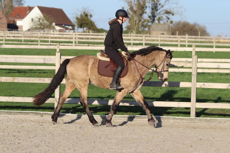 Connemara – 5-year-old mare – 14.2–14.3 hh Goldie is a particularly gentle and sweet 5-year-old Connemara mare with a beautiful, compact build. She is very pleasant to handle: social with other horses and completely free of typical mare behavior. She also travels very easily. Under saddle, Goldie has plenty of power and enthusiasm. She remains consistently well-behaved and is easy to control, but due to her forward temperament, she is especially suitable for experienced riders who enjoy riding with challenge and energy. In jumping, Goldie demonstrates great ability and enthusiasm. She effortlessly clears 4’0” (1.20 m), always with plenty of GO. She never refuses. Goldie was fully veterinary and clinical checked on 24/06/2025 (legs, back, and neck), with no remarks. 📞 More info: +32 475 68 22 43 🎥 Videos: available on our website (upon request)