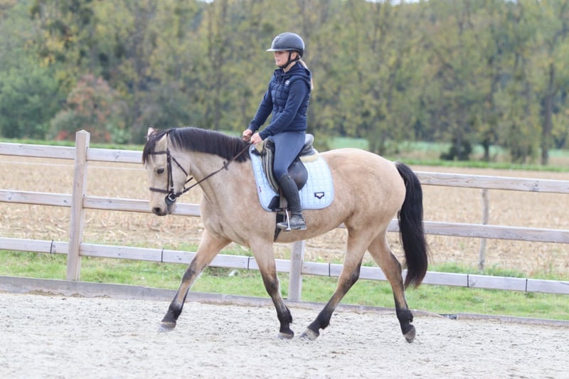 Bohola Beauty („Bo“) Bo ist eine 5-jährige, faltblaue Connemara-Stute mit einer Stockmaß von 1,53 m. Sie besitzt ein attraktives Erscheinungsbild, ein sanftes Wesen und eine neugierige Einstellung. Derzeit springt Bo eine Parcours-Strecke von 70 cm und zeigt deutliches Potenzial für höhere Aufgaben. Im Umgang ist sie brav, sozial und freundet sich schnell auf der Weide an. Sie genießt auch Spaziergänge im Gelände und bleibt stets kooperativ und aufmerksam. Bo stammt von dem bekannten Connemara-Hengst Bohola Mirah ab, einem Hengst mit einer starken Abstammung aus der Linie von Westside Mirah. Bohola Mirah ist bekannt für seine korrekte Konstitution, gute Bewegungen und starke Rasseausdruckskraft – Eigenschaften, die auch bei seinen Nachkommen häufig sichtbar sind. Bo verfügt über eine Class 1-Abstammung. Zudem wurde sie N/N auf Hoof Wall getestet, was zusätzliche Sicherheit hinsichtlich ihrer Gesundheit und Vererbung bietet. 📞 Weitere Infos: +32 475 68 22 43 🎥 Für Videos besuchen Sie bitte unsere Webseite.
