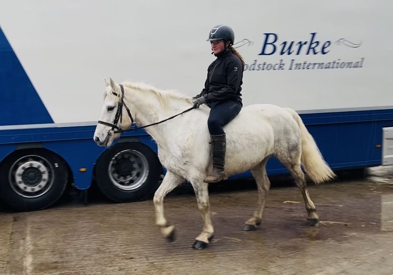 Cailin 8yo reg Connemara mare 148cm. She has fully recorded, Class 1 pedigree (see photos). Cailin is a quiet riding pony and has a good positive attitude to her work. She is doing the basics very well. Moves steadily through her paces in the school. She has schooled over poles and small x country fences. She is very brave, honest and enjoys training. Brave to hack out and will go alone or in company. Good in traffic. In the stable she is pleasant to deal with and has no problems in handling. Cailin is a gorgeous allrounder pony and can be suitable for any equestrian activity. She will make someone very happy. Price €5,200 Located in Sligo, Ireland. Regular professional transport available if required. For further information or videos please contact Edward on 00353871412129. All enquiries welcome!