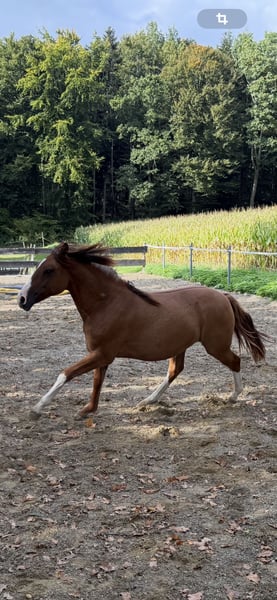 Ma petite Anahita a été primée comme pouliche et cherche maintenant son futur compagnon. Elle grandit dans un troupeau mixte, avec des enfants de son âge, et fait preuve d'une grande capacité à s'imposer et d'un caractère typiquement personnel. Elle vient d'être sevrée et a déjà réussi ses premiers trajets en remorque. Il va de soi qu'elle est en contact quotidien avec les enfants, les chiens, le tracteur, etc. Je demande une écurie ouverte adaptée avec des copains chevaux. N'hésitez pas à me contacter si vous avez des questions. Nous nous réjouissons de recevoir de belles demandes avec des noms et des informations de votre part sur l'élevage, les projets pour la petite, etc.