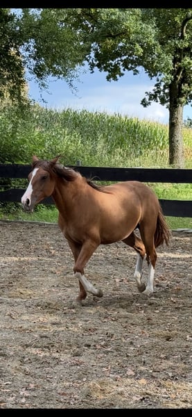 BES Anahita wurde als Prämienfohlen ausgezeichnet und sucht ihre zukünftigen Menschen. Sie wächst in einer gemischten Herde mit Gleichaltrigen auf, weiß in der Herde ihren Platz und ordnet sich unter, fordert aber auch ihre Rechte. Dem Menschen gegenüber immer freundlich und neugierig. Hänger fahren, Hufe geben, Halftern, führen sind für sie kein Problem, Neuem gegenüber offen, lernt problemlos. Täglicher Umgang mit Kind, Hunden, Traktor usw sind selbstverständlich. Ana ist jetzt mehrfach entwurmt, gechipt, Tetanus geimpft, eingetragen und hat volle Papiere. Geeignete Offenstall Haltung mit Pferde Kumpels setze ich voraus. Bei Fragen einfach melden, am einfachsten über WhatsApp 01729919663 Wir freuen uns über nette Anfragen mit Namen und Infos über Haltung und Pläne für die Kleine usw.