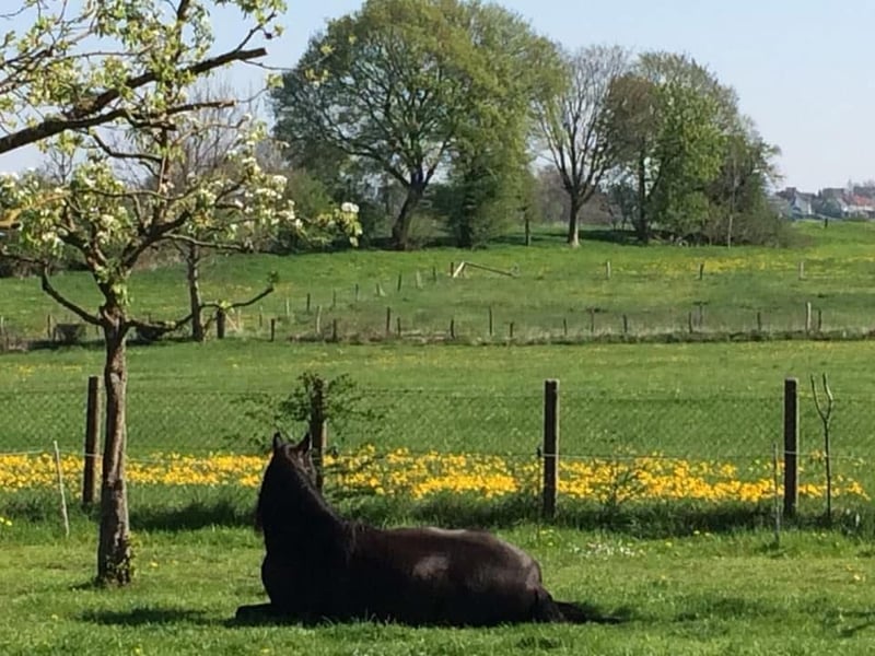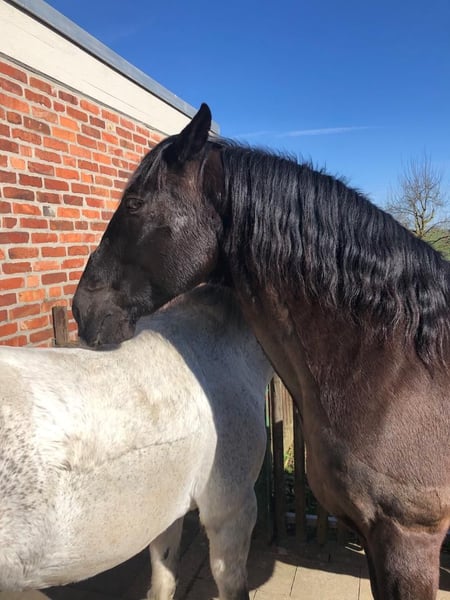 Montenegro (18 Jahre, 1.53m, Cruzado, castaño, grüner Paß) Er ist ein absolutes Freizeitreitertraumpferd. Er macht einfach alles mit und ist dabei immer tiefenentspannt aber nicht langweilig. Spaniertypisch sehr bequem zu sitzen. Bei uns zeigt er sich als geduldiger Lehrer für Anfänger, sehr lieb mit ängstlichen Reitern und voller positiver Energier mit mir (alter Hase seit 50 Jahren im Sattel). Er ist stellt sich auf den jeweiligen Menschen ein und ist immer dabei, wenn es darum geht Neues zu erarbeiten/entdecken. Ob Ausritte, alleine oder in der Gruppe, Schlitten ziehen, Working Equitation, Garrocha, Coolnesstraining, Handarbeit, berittenes Bogenschiessen, Trail/Extremtrail, Lektionen unter dem Sattel. Wir hatten fleißig Unterricht. Er ist sehr vielseitig ausgebildet und ganz fein an den Hilfen. Man hat nur das Gewicht des Zügelleders in der Hand, fein am Bein und Gewicht, Stimmhilfen und Körpersprache. Er wird derzeit einhändig im Bosal oder Kandare gearbeitet und macht richtig Spaß. Er geht auch sehr schön in der Portugiesiscshen Kandare (4-zügelig). Er ist von der ruhigen besonnen Sorte aber keine Schlaftablette. Weder triebig noch eine Rennsemmel. Kann sich sehr gut konzentrieren, verzeiht Fehler. Kennt alles was ein lebendiges Dorfleben zu bieten hat. Kühe, Schafe, Enten Hunde, große Maschinen uvm. auch Boxenhaltung, Offenstall, Heuraufen und -netze, Führanlagen, Reitplätze, Hallen usw. Bleibt selbst bei herannahenden Drohnen cool. Geht über Brücken, Gitterroste und auch schmale Wege. Kennt es im Hänger zu einem Training zu fahren. Sowohl über Nacht als auch für eine Einheit. Meinen Traum im Damensattel zu reiten würde er sicherlich, ohne mit der Wimper zu zucken, mitmachen. Unkompliziert, hat ein riesengroßes Herz, menschenbezogen und ein Genießer. Liebt die Masterson Methode. Ein Schatz auf vier Hufen mit besten Manieren nicht nur unter dem Sattel, sondern auch im täglichen Umgang. Und wenn man Lust auf einen flotten Galopp hat kann man anschließend einfach die Zügel lang lassen und gemütlich dahinschländern. Tierarzt, Zahnarzt, Schmied, Hänger fahren usw. macht er ganz locker. Ich suche schweren Herzens ein passenderes Zuhause für ihn nur aus einem Grund. Nach Jahren als Einstaller halten wir unsere zwei Pferde Zuhause in Eigenregie. In den Ställen bekamen sie zu viel Futter, was sie nicht vertragen. Er bekam EMS. Hier bei uns kann ich nicht die Umgebung schaffen die für ihn funktionieren würde. Er liebt es mit anderen Wallachen zu spielen. Unsere Stute spiel nicht mit ihm. Es fehlen ihm Bewegungsanreize und leider sind unsere Weiden sehr fett. Er ist Checkheft gepflegt und gesund bis auf EMS. Er ist nie krank und verletzt sich nie, hat keine Allergien oder sonstiges. Ist Barhufer mit Hufschuhen. Es gibt natürlich noch viel mehr zu erzählen, daß dann gerne bei ☕️☕️ Montenegro lebt bei Aachen. Gerne darf ein entspanntes Kennenlernen über mehrere Besuche stattfinden ist jedoch kein Muss. Für Monte ist neben einer gesunden Ernährung viel Bewegung wichtig. Er bewegt sich sehr gerne. Weidegang mit Jungs zum Toben, Allwetterreitplatz oder Halle die ein ganzjähriges kontinuierliches Training ermöglichen, eine Führanlage wäre hilfreich. Wir haben diese Möglichkeiten leider nicht. Wer ernsthaftes Interesse hat darf mich gerne alles fragen.
