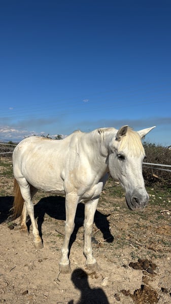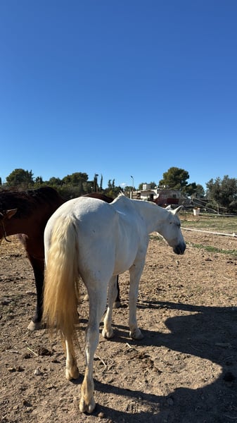 Busco un hogar para un caballo para el resto de su vida a Niro, un caballo noble y tranquilo que ha trabajado toda su vida en una escuela de equitación. Es 157 cm en altura y 23 años. Ahora quiero ofrecerle una jubilación encantadora en una familia que lo cuide y lo quiera. Puede llevar solo cargas ligeras de monta, ideal para paseos tranquilos o como caballo de compañía . Apta para todos tipos de jinetes) Muy amante de las caminatas y de la vida en el campo. No apto para clases ni trabajo intenso. Perfecto para un niño o un jinete ligero. Tiene melanomas, pero aparte de eso goza de buena salud para su edad.
