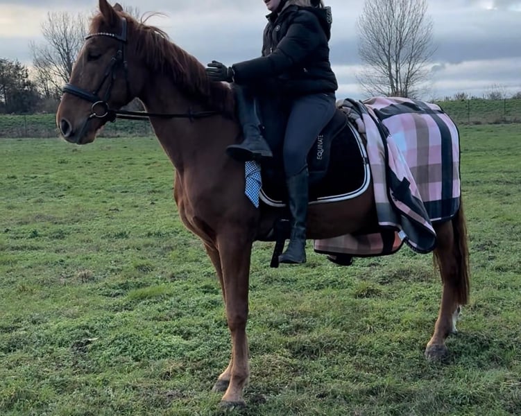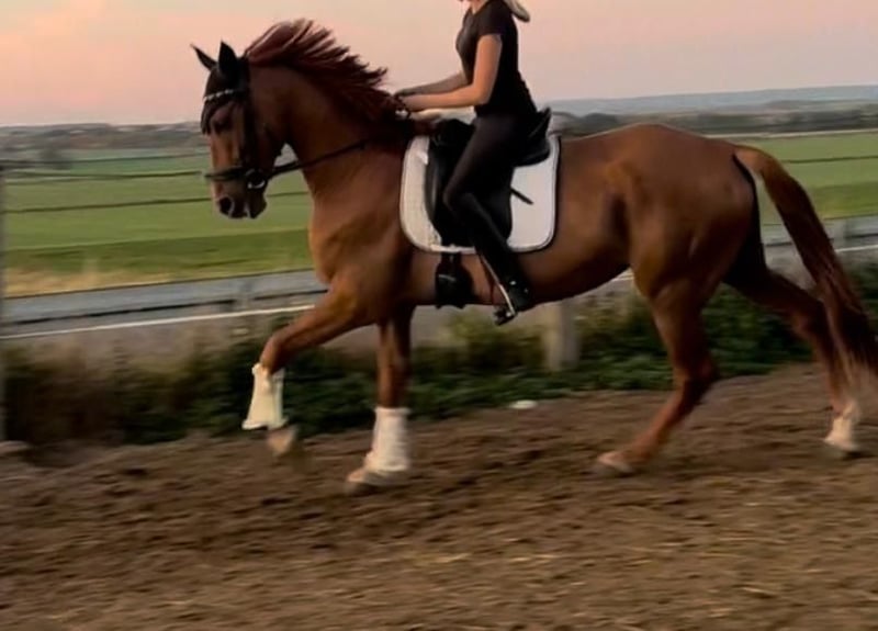 Fuchsi is a 6-year-old gelding standing approximately 1.60 meters at the withers, with an absolutely lovable character. He is very well-behaved and reliable under saddle, showing himself to be fearless both alone and in a group, whether in the terrain or on the trail. Despite his somewhat challenging past, Fuchsi is a true heart horse with whom you can do anything. He is human-oriented, friendly, and always up for some fun. Currently, he is shod in the front, lives in a box at night, and is turned out during the day. He is also familiar with paddock keeping, which is no problem for him. He still needs to build more muscle mass. We wish for Fuchsi to find a wonderful, loving home where he will be appreciated and loved just as much as he is with us.