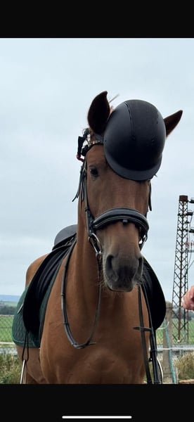 Fuchsi es un caballo de 6 años, un caballo de 1,60 m de altura, con un carácter sumamente adorable. Es muy tranquilo y confiable bajo la silla, mostrando una valentía excepcional tanto en el campo, solo como en grupo. A pesar de su pasado no del todo fácil, Fuchsi es un auténtico caballo de corazón, con el que se puede hacer cualquier locura. Es muy sociable con las personas, amistoso y siempre dispuesto a divertirse. Actualmente lleva herraduras en las patas delanteras, duerme en box por la noche y durante el día está en paddock, aunque también conoce el manejo en establo abierto, lo cual no le supone ningún problema. Aún necesita desarrollar más su musculatura. Nuestro deseo es encontrar para Fuchsi un hogar hermoso y lleno de amor, donde sea valorado y querido tanto como nosotros.