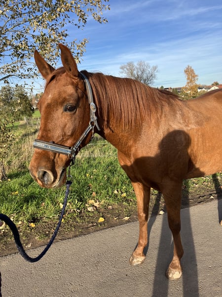 Ich stelle einen 8 Jährigen Spanierwallach zum Verkauf, möglichst zeitnah. Er ist ein nettes aber sensibles Pferd in den man noch viel Arbeit investieren muss. Wird aktuell bei uns eingeritten, zeigt sich hierbei aber brav. Kennt bisher aber nur Reitergewicht, also so gut wie ROH! Im Umgang wirklich super brav und von jedem Händelbar. Hat KEINE Unarten Gibt brav alle Hufe, auch beim Schmied. Bleibt auch mal eine Stunde allein am Stall und geht brav alleine von der Herde weg. Stockmaß 1,60 Keine gesundheitlichen Mängel bekannt. Hat ein Schönheitsfehler(Narbe rechts an Maul und rechtes Hinterbein), welcher ihn jedoch nicht beeinträchtigt. Standort 66892 Preis 3000€ Für mehr Infos einfach anschreiben,;) BEI SCHNELLER ABHOLUNG IST DER PREIS VERHANDELBAR