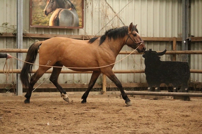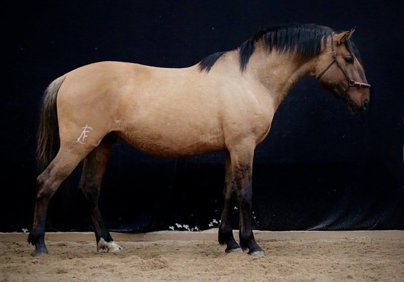 Tânger ist ein sehr kräftiger Lusitano (Papa noch nicht gekört, daher noch kein volles Papier, wird aber angestrebt) er ist somit rein Lusitano! Wir haben ihn als Absetzer von seinem Züchter in Portugal gekauft. Auch er wuchs bei uns mit unseren anderen Junghengsten gemeinsam auf. Er ist Träger des Dum Gens und ist somit ein echter Falbe und hat an den Beinen ganz tolle Wildstreifen. Auch ihn haben wir vor einigen Wochen aufgestallt und beginnen nun langsam mit seiner Ausbildung. Er kennt jetzt etwas Bodenarbeit, longieren, Trense, Sattel. Er ist hierbei absolut anständig und immer kopfklar! Auch über ihm findet ihr mehr auf meiner Instagram Seite Reitkunst-iberische-Pferde Kontaktiere mich gerne bei Interesse