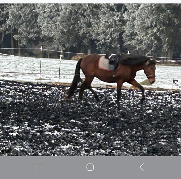 Zum Verkauf steht ein wunderschöner brauner Cruzado Hengst, geboren im Jahr 2022. Mit einem geschätzten Endmaß von 162 cm. Er ist in Deutschland geboren und besitzt einen grünen Pass. Bonito ist noch nicht geritten. Er ist halfterführig, wurde ein paar Mal longiert und kennt auch schon den Sattel. Er ist Tetanus geimpft und entwurmt, wird regelmäßig alle sechs Wochen vom Hufpfleger bearbeitet. Die Zähne wurden im September gemacht, dabei wurden die Wolfszähne entfernt. Bonito ist nicht hengstig, braucht jedoch einen konsequenten Menschen an seiner Seite, da er typisch Jungpferd auch mal testet. Der junge Hengst überzeugt durch ein angenehmes Temperament, schöne Grundgangarten und ein korrekten Körperbau. Er war noch nie krank. Auf Wunsch kann gegen einen geringen Aufpreis ein Sattel (muss natürlich aufs Pferd angepasst werden)Trense und weiteres Zubehör mitgegeben werden. Bei Interesse oder für weitere Informationen stehe ich Ihnen gerne zur Verfügung. Ein Kennenlernen ist nach Absprache möglich.