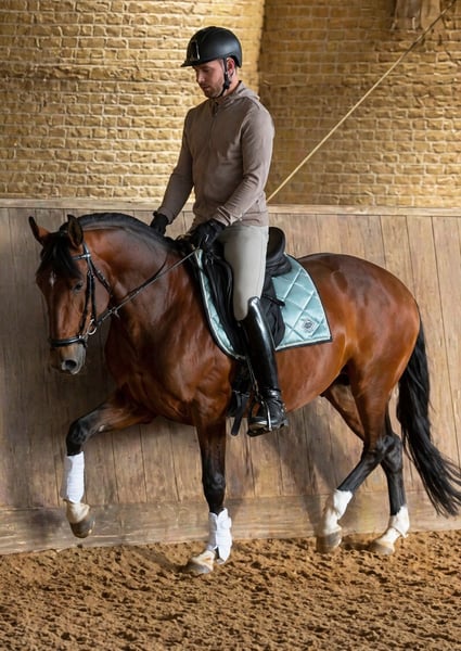 🔹 Beschrijving: Te koop staat een prachtige Cruzado hengst, geboren in 2018, met een schofthoogte van ongeveer 152 cm. Hij valt op door zijn harmonieuze verschijning, zijn expressieve hoofd en zijn vriendelijke, mensgerichte karakter. Een paard dat meteen in het oog springt en tegelijkertijd overtuigd door zijn oprechte aard. Onder het zadel toont hij zich solide op A-dressuurniveau met drie betrouwbare basisgangen. Zijgangen en buitenwaarts galopperen zijn al aanwezig en goed te controleren. Hij werkt gemotiveerd mee en toont veel leergierigheid en plezier in verdere ontwikkeling. Hij is een klein plezierpaard dat zijn ruiter dagelijks een goed gevoel geeft en tegelijk voldoende potentieel heeft voor verdere dressuurmatige groei. In de omgang toont hij zich over het algemeen braaf, attent en coöperatief. Hij kent zowel de binnen- als buitenbak en wordt regelmatig gereden. Een ideaal paard voor ambitieuze recreatieve ruiters of ruiters die op zoek zijn naar een eerlijk paard met perspectief. 🔹 Gegevens: * Ras: Cruzado * Geslacht: hengst * Geboren: 2018 * Schofthoogte: circa 152 cm * Opleidingsniveau: A-dressuurniveau * Locatie: Saarland 🔹 Bijzonderheden: * Mensgericht & vriendelijk * Solide basis in dressuur * Zijgangen & buitenwaarts galopperen aanwezig * Gemotiveerd en leergierig * Ideaal recreatie- en opleidingspaard 🔹 Reitvideo beschikbaar op WhatsApp bij interesse