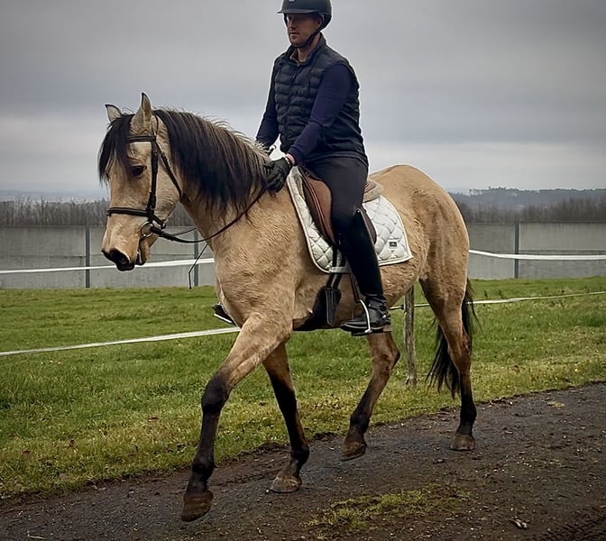Nom : Lena Race : Cruzado (croisement) Sexe : Jument Date de naissance : 01/05/2015 Âge : 10 ans Taille au garrot : 1,60 m Couleur : Isabelle Origine : inconnue Caractère : sensible, curieuse, intelligente Formation / Aptitudes : loisir, travail à la longe Expérience en terrain : attentive, intrépide, en groupe Santé : vermifugée, vaccinée, pieds nus, sans eczéma, dents contrôlées, traitée en ostéopathie Hébergement : box, paddock Particularités : ferrée et déchargée sans problème, dominante dans le groupe Les caractéristiques mentionnées sont basées sur notre appréciation personnelle et ne constituent pas une garantie. Prix : 6 500 € (prix TTC) Vous avez suscité notre intérêt ? Pour vous donner une meilleure impression de Lena, nous serions ravis de vous envoyer sa vidéo de reprise. Bien entendu, nous restons à votre disposition pour une description détaillée du cheval, un conseil personnalisé et pour répondre à toutes vos questions, également par téléphone. N’hésitez pas à nous contacter à tout moment par WhatsApp ou à appeler au : +49 15119487595 Nos horaires téléphoniques sont quotidiens de 7h00 à 13h30 et à partir de 20h00. Nous serions heureux d’avoir de vos nouvelles ! Une visite vétérinaire ou une radiographie préalable à l’achat peut être effectuée par le vétérinaire de votre choix. Lena peut également être livrée en toute sécurité et confortablement à votre nouveau domicile. Nous prenons en charge toutes les préparations nécessaires et le transport, afin que votre nouveau compagnon arrive sans stress, bien soigné, assuré et en bonne santé. Actuellement, nous proposons une sélection soigneusement choisie de chevaux à vendre. Chez nous, vous trouverez sûrement le cheval de vos rêves. N’hésitez pas à visiter notre site internet : www.marvinsroyalhorses.de. Chers clients, nous serons heureux de vous présenter nos chevaux et de vous permettre de les brosser, monter, longe, faire du travail à la longe ou du travail en liberté en carrière, sur le terrain ou en manège, pour mieux connaître votre futur compagnon. La séance coûte 40 € par cheval, 30 € pour chaque cheval supplémentaire, et sera remboursée lors de l’achat. Notre adresse : Grube Ferdinand 50 53577 Neustadt Wied Google Maps : marvinsroyalhorses