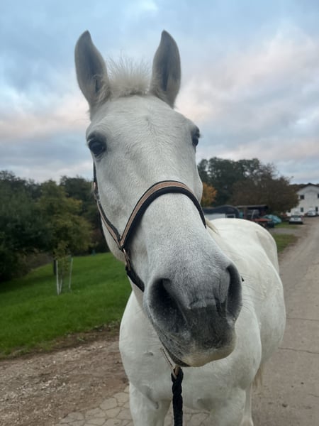 Sehr schweren Herzens müssen wir uns von unseren sehr lieben und ehrlichen Stute trennen. Sie hat ein Stockmaß von ca 1,60 m. Letztes Jahr hatte sie einen Sehnenschaden,der aber ausgeheilt ist. Aktuelle Röntgen- sowie Ultraschallbilder liegen vor. Unsere reiterlichen Ambitionen passen leider nicht mehr zu dem, was „Fanti“ leisten kann. Wir wünschen uns für sie einen liebevollen Menschen,für den das Reiten nicht im Vordergrund steht,sondern der den Schwerpunkt auf Bodenarbeit oder gemütliche Ritte ins Gelände legt. Alleine geht sie nicht so gern vom Stall weg,sie geht lieber mit einem anderen Pferd als Partner los. Sie ist eine totale Lebensversicherung beim reiten und im Umgang ein wahrer Schatz. Sie ist im Sommer 24/7 Koppel gewöhnt und im Winter Boxenhaltung mit täglichen Auslauf. Wir könnten uns aber auch sehr gut eine Offenstallhaltung für sie vorstellen. Fanti ist in ihrer Stutenherde sehr verträglich und geht dem Ärger lieber aus dem Weg. Ein Sattel kann gegen Aufpreis mit erworben werden. Platz definitiv vor Preis und keine Händler!!! Bei ernsthaften Interesse,können sie sich gerne melden und weitere Fragen können beantwortet werden.