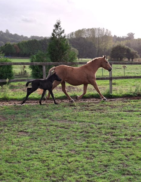 For sale: Mare with a fabulous temperament, trained in haute école movements. She is riding well and has a recently born foal. The sire is an exceptional purebred Spanish horse with a black coat. Photos available.