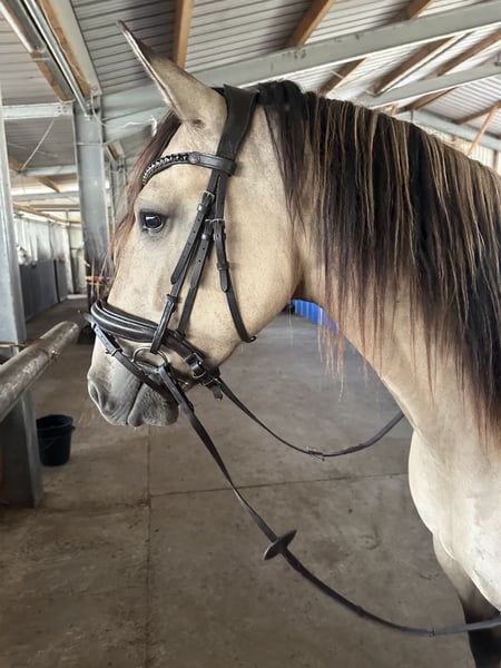 Schweren Herzens muss ich mich von meiner Herzensstute Calina trennen. Calina ist eine vierjährige Spanier Stute und ist 1,61 m groß. Ich besitze Calina schon, seit sie ein Fohlen ist. Sie kam damals aus Spanien zu mir, und seither lebt sie bei mir. Aufgrund privater Umstände und auch nur deswegen muss ich schweren Herzens ein neues Traum zu Hause für sie finden.Calina wurde immer schonend mit Vernunft und mit bedacht behandelt und auch dementsprechend fein ein geritten.Calina hatte noch nie Probleme mit neuen Situationen. Sie war schon immer eine sehr liebe Stute, die es einem immer versucht recht zu machen. Mit vier Jahren vor circa einem halben Jahr habe ich angefangen sie mit einer Bekannten zusammen einzuleiten, sie ging schon vom ersten Tag an ohne Probleme mit mir alleine ins Gelände. Auch meine siebenjährige Tochter konnte ich schon bevor sie ein geritten war, von der Schule abholen oder sie im Schritt im Gelände führen. Calina liebt ausgedehnte Spaziergänge, bei denen sie sich wälzen darf, auch ins Wasser geht Calina für ihr Leben gerne. Calina zeigt sich nervenstark und unerschrocken. Ich hoffe auf diesem Weg einen Herzens Mensch für Sie zu finden, da mir sehr viel an ihr liegt.