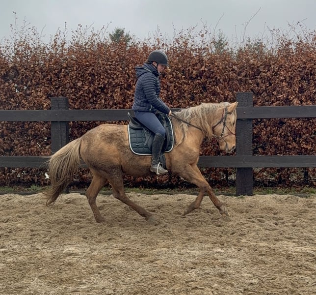 For sale is a 4.5-year-old mare, approximately 15.1 hh, in the beautiful Dunalino color with no pedigree information. She has been well-schooled in leisure riding and demonstrates great talent in dressage work in the riding arena. She also handles small jumps without any issues, and this aspect can be further developed. She shows no bad habits under saddle and is quite easy to ride, making her suitable even for riding schools. In handling, she is very straightforward and well-behaved. She lives in an open stable and gets along well with other horses in a mixed herd. She can be kept robustly but is also familiar with box stall housing. No health issues or allergies are known. An ultrasound examination (AKU) can be performed upon request. A trial ride, pre-ride, or other testing of the horse costs €35, which will be credited towards the purchase if the deal is finalized. Please call or send a message to 0157 36803742. All information provided is without guarantee. Price may be subject to change. Transport is possible, and online purchase is available.