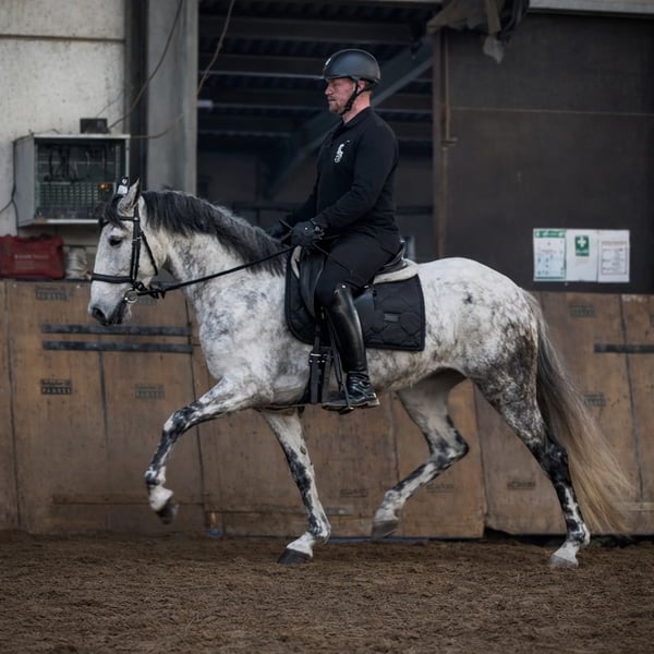 Name: Valentina Rasse: Cruzado, Kreuzung Geschlecht: Stute Geburtsdatum: 14.02.2021 Alter: 5 Stockmaß: 1.55m Farbe: Schimmel Abstammung: ohne Abstammungsnachweis Charakter: menschenbezogen, neugierig, intelligent, mutig, geduldig, gelassen Ausbildung/Eignung: Dressur, Freizeit, Working Equitation Geländeerfahrung: aufmerksam, nervenstark, zuverlässig, unerschrocken, alleine und in der Gruppe Gesundheit: entwurmt, geimpft, Barhufer, ekzemfrei, Zähne kontrolliert, ostheopatisch behandelt Haltung: Box, Offenstall Besonderheiten: schmiede und verladefromm, herdenverträglich Die genannten Eigenschaften beruhen auf unserer persönlichen Einschätzung und stellen keine zugesicherten Merkmale dar. Preis: 6900 (Bruttopreis) Haben wir ihr Interesse geweckt? Um Ihnen einen besseren Eindruck von Valentina zu geben, senden wir Ihnen sehr gerne Ihr Reitvideo zu. Selbstverständlich stehen wir Ihnen für eine ausführliche Beschreibung des Pferdes, persönliche Beratung und zur Beantwortung aller Ihrer Fragen auch telefonisch zur Verfügung. Bitte schreiben Sie uns hierfür jederzeit eine WhatsApp Nachricht, oder rufen unter folgender Telefonnummer an: +49 15119487595 Unsere Telefonzeiten sind täglich von 7:00 - 13:30 sowie ab 20:00Uhr. Wir freuen uns über Ihre Kontaktaufnahme! Eine klinische oder Röntgenologische Ankaufsuntersuchung kann gerne vom Tierarzt Ihrer Wahl durchgeführt werden. Natürlich kann Valentina sicher und komfortabel in ihr neues Zuhause geliefert werden. Wir kümmern uns um alle notwendigen Vorbereitungen und den Transport, damit Ihr neues Pferd stressfrei, gut betreut, versichert und wohlbehalten im neuen Zuhause ankommt. Zurzeit präsentieren wir eine sorgfältig ausgewählte Vielfalt an Verkaufspferden. Bei uns finden Sie garantiert Ihr Traumpferd. Besuchen Sie uns auch gerne auf unserer Homepage unter: www.marvinsroyalhorses.de. Sehr geehrte Kunden, gerne stellen wir Ihnen unsere Pferde vor und führen, putzen, satteln, longieren, Bodenarbeit sowie Probereiten in der Reithalle, auf dem Platz oder im Gelände ist Ihnen möglich, um Ihr neues Familienmitglied näher kennenzulernen. Dieses kostet für ein Pferd 40€, für jedes weitere 30€ und wird beim Kauf wieder erstattet. Unsere Adresse lautet: Grube Ferdinand 50 53577 Neustadt Wied Google Maps: marvinsroyalhorses