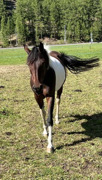 Vaya è una splendida, aperta e socievole cavalla Cruzado. Ha andature molto morbide e confortevoli ed è molto delicata nel maneggio. Nell’estate del 2025 è stata avviata dolcemente alla disciplina Parelli Natural Horsemanship e montata in tutte e tre le andature in arena, anche se le mancava ancora un po’ di equilibrio e forza al galoppo. Da autunno lavora principalmente a terra e ha preso una pausa dalla monta. È sempre motivata e molto sincera, non gradisce troppo la pressione. A causa del suo temperamento, non è adatta a principianti o bambini; necessita di un cavaliere esperto e di una mano delicata. Può essere un po’ spaventata e talvolta tendere a reagire eccessivamente, anche saltellando, ma non è mai cattiva e si lascia sempre gestire bene. Attualmente si trova in paddock con altre femmine; conosce anche il box e il pascolo durante il giorno, anche se credo che preferisca il paddock aperto a causa del suo desiderio di movimento e del suo carattere sociale. È piuttosto di rango basso e molto socievole. Certificato di salute (AKU) disponibile, è barefoot. Purtroppo non abbiamo un’affinità perfetta, perciò vorrei trovargli una nuova casa da una persona che possa offrirle la vita che merita, perché Vaya merita solo il meglio: è una vera gemma.
