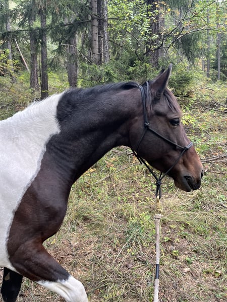 Vaya est une magnifique jument Cruzado, ouverte, sociable et très attachante. Elle possède des allures très souples et confortables, et se montre très douce dans sa manière de travailler. À l'été 2025, elle a été doucement initiée au Parelli Natural Horsemanship et a été montée en liberté dans toutes les trois allures en manège, bien qu’elle manque encore un peu de équilibre et de puissance au galop. Depuis l’automne, elle est principalement travaillée en longe et a fait une pause en selle. Elle reste toujours motivée, très honnête, et n’apprécie pas trop la pression. En raison de son tempérament, ce n’est pas un poney pour débutants ou enfants : elle a besoin d’un cavalier expérimenté et d’une main douce. Elle peut être un peu craintive, a tendance à réagir parfois de façon excessive, et peut donner un petit saut, mais elle n’est jamais méchante et reste toujours facile à gérer. Actuellement, elle vit en paddock avec d’autres juments. Elle connaît aussi la stabulation avec pâturage en journée, mais je pense que l’option paddock lui convient mieux, étant donné son besoin de mouvement et son caractère social. Elle est plutôt basse dans la hiérarchie et très sociable. L’AKU (certificat de santé) est disponible, elle est pieds nus. Malheureusement, nous ne sommes pas la meilleure équipe, c’est pourquoi je souhaite lui offrir un nouveau foyer auprès d’une personne qui pourra lui offrir la vie qu’elle mérite, car elle ne mérite que le meilleur : c’est une vraie perle.