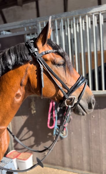 With a heavy heart, I am looking for a new home for my mare due to lack of time. I bought her as a three-year-old, just backed, and trained her together with my trainer up to Elementary dressage. It was very important to me that she always has enough time, which is why we only competed in class E this year — successfully. She is an absolutely level-headed, honest, and incredibly people-oriented horse. She remains calm in new situations, pays attention, and trusts her handler. Despite her gentle nature, she sometimes needs a clear, loving hand to guide her. She is always motivated in work, learns quickly, and enjoys hacking out. Even children or less experienced riders can handle her wonderfully. She loads onto the trailer without issue and remains calm in new environments, whether at competitions or in unfamiliar terrain. I wish for my Candy to find a home where she is considered a family member, just as she is with me. I can very well imagine her as a children's pony or as part of a mother-daughter pair. I am not looking for a sports stable or a dealer but for her person — someone who sees her with their heart. A home where she is seen, understood, and simply allowed to be a horse — whether as a leisure partner, family horse, or beloved companion. If genuinely interested, I am happy to share more about her background and send current videos. I hope to find someone who sees her with their heart — she truly deserves it. A veterinary health check (AKU) is of course possible. For an additional fee, her saddle and equipment can also be purchased. A trial ride costs €35, which will be deducted from the purchase price. Price is secondary to finding the right home.