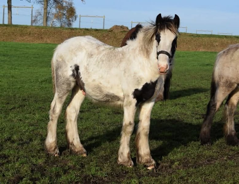 White Knight ist ein wunderschönes Hengstfohlen. Es wird voraussichtlich eine große Bemuskelung haben. Die erwartete Stockmaß liegt bei 1,60/1,65 m. Mutter Tinker. Vater Clydesdale, Stobilee Proclamer. Hat die erste Prämie erhalten und wurde Tagessieger bei der Zuchtprüfung des NSvT.