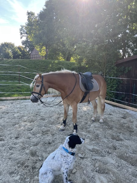 Es bricht mir das Herz, diese Zeilen zu schreiben, aber manchmal bedeutet Liebe auch, loszulassen, um dem anderen ein besseres Leben zu ermöglichen. Da das Leben unvorhersehbar sein kann sehe ich mich aufgrund meiner chronischen Erkrankung nicht mehr in der Lage meinem geliebten Bodyguard zu geben, was er verdient und braucht, suche ich für ihn ein neues 5 Sterne Zuhause. Bodyguard ist ein 2018 geborener Edelbluthaflinger und macht seinem Namen alle Ehre: Er ist ein treuer Begleiter, ein Seelentröster und ein absoluter Schatz. Ich habe ihn selbst erst 6-jährig gekauft und wir sind seitdem eng zusammengewachsen. Er liebt die Nähe zum Menschen und genießt jede Streicheleinheit in vollen Zügen. Er ist extrem lernwillig und intelligent. Er möchte gefordert werden und lernt neue Dinge in Windeseile. Zudem hat ist er Gesund und hat keine Vorerkrankungen oder alte Verletzungen, ein TÜV kann gerne gemacht werden. Er ist solide auf A-Niveau ausgebildet und hat auch schon mit viel Freude die ersten Sprünge unter dem Sattel gemeistert. Dabei zeigt er viel Vermögen und eine gute Technik am Sprung. Bodyguard steht in der Blüte seines Lebens. Er möchte sich bewegen, lernen und viel kennenlernen. Meine Erkrankung setzt mir hier jedoch Grenzen, die ihm gegenüber nicht fair sind. Er wartet am Zaun und möchte etwas tun – und ich kann es ihm nicht mehr in dem Maße bieten, wie sein junger Geist es verlangt. Er ist zu schade, um nur "herumzustehen". Gerne kann ich weitere Bilder oder Videos auf Anfrage schicken, auch bei Fragen stehe ich gern zur Verfügung. Nur wenn alles passt, dies ist kein Notverkauf!!! Bodyguard wird nur abgegeben, wenn ich das absolute Gefühl habe, dass er seinen "Deckel" gefunden hat. Mir ist es wichtiger, dass er geliebt wird und alt werden darf, als eine bestimmte Summe zu erzielen. Wenn du das Gefühl hast, dass du Bodyguard die Zukunft schenken kannst, die ich ihm gerade nicht bieten kann, freue ich mich auf eine Nachricht, in der du dich und dein Zuhause kurz vorstellst. Anfrage gerne per Mail oder WhatsApp per 015901486387, Anrufe nur nach Absprache.