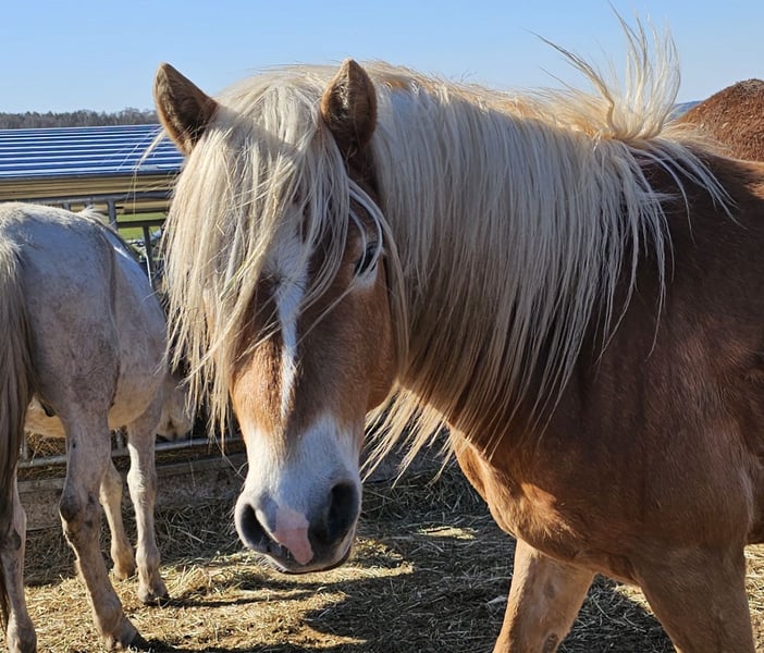 Our 3-year-old Haflinger stallion Stradivari, with excellent pedigree, is for sale. He is still unbroken and is in the young stallion herd. Stradivari is people-oriented and appears very composed and relaxed. We can envision him in all possible disciplines. He could be gelded with us upon request. Once he begins training, his price will increase.