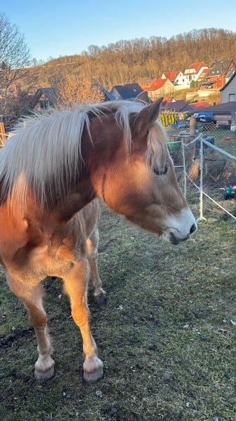 Im Auftrag zu verkaufen Schweren Herzens suchen wir für unsere wundervolle Stute Holly ein neues, passendes Zuhause. Holly ist eine 2,5-jährige Edelblut-Haflingerstute, kerngesund und mit vollen Papieren sowie hervorragender Abstammung. Sie überzeugt nicht nur durch ihr schönes Erscheinungsbild, sondern auch durch ihren lieben und ausgeglichenen Charakter. Die junge Stute kennt bereits Spaziergänge, den Hufschmied und zeigt sich dabei stets unerschrocken. Sie lässt sich problemlos überall anfassen und genießt das Putzen und die Aufmerksamkeit sehr. Ihr voraussichtliches Endmaß liegt bei ca. 150 cm. Holly bringt beste Voraussetzungen für eine tolle gemeinsame Zukunft mit und wird nur in ein passendes und liebevolles Zuhause abgegeben. Bei ernsthaftem Interesse freuen wir uns über eine Nachricht.