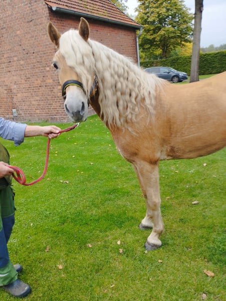 Zum Verkauf steht Staatsprämienstute Stella, die Siegerstute der Edelbluthalfinger der Eliteschau 2025 in Münster-Handorf. Die 4-jährige Stute v. Strippoker a. d., StPrSt. Helinda v. Süddt. Prämienhengst Navy blue – Aquarell, mit einem derzeitigen Stockmaß von 1,44 m, konnte schon 2021 als Fohlen auf dem Norddeutschen Fohlenchampionat, ebenfalls in Münster-Handorf, überzeugen und belegte auch dort den 1. Platz. Stella wurde im Frühjahr schonend an Longe und Reitergewicht gewöhnt und war vor ihrer Stutenleistungsprüfung 4 Wochen in Beritt beim Westfälischen Pferdezentrum/Münster. Sie legte am 24.07.2025 ihre Stutenleistungsprüfung mit 7,85 ab. Sie hat eine sehr hübsche Aufmachung und einen tollen Körperbau und ist mit drei sehr guten Grundgarten ausgestattet. Auch ihr Interieur lässt keine Wünsche offen. Sie ist im täglichen Umgang eine sehr liebe und menschenbezogene Stute. Sie lässt sich gerne ohne Probleme waschen, absaugen, trockenfönen und lange striegeln. Sie ist auch brav beim Schmied, Tierarzt und beim Verladen. Altersbedingt muss sie natürlich noch viel lernen und Routine bekommen, aber sie ist immer händelbar und arbeitswillig. Sie ist keine Schlaftablette und muss reiterlich noch weiter gefördert werden (derzeit noch nicht für Anfänger geeignet). Da uns dies zeitlich nicht möglich ist und der Bestand altersbedingt vom Züchter, reduziert werden muss, steht diese tolle Stute zum Verkauf. Sie ist nach weiterer Ausbildung sicherlich für viele Sparten geeignet (Dressur, Springen, Vielseitigkeit, Fahren, Zucht). Sie könnte natürlich auch direkt in die Zucht einsteigen, um ihre tollen Eigenschaften weiterzuvererben. Ihre Mutter Helinda, ebenfalls Staatsprämienstute und SLP mit 8,38 abgelegt in Bayern, hatte 2019 noch eine weitere Staatsprämientochter, Nala v. Nachtstolz. Helinda und Nala sind beide geritten und zweispännig gefahren und ebenfalls sehr umgänglich. Stella steht derzeit tagsüber im Offenstall zusammen mit ihrer Mutter, Halbschwester und einem alten Wallach, und kommt stundenweise auf die Wiese. Sie kennt auch Boxenhaltung und bekommt täglich in der Box ihr Kraft- u. Mineralfutter. Der Schmied war regelmäßig da. Sie war während des Beritts und der Schauen in Münster vorne beschlagen, läuft aber aktuell wieder ohne Probleme barhuf. Wir wünschen uns ein gutes Zuhause für Stella, wo sie weiter gefördert wird und viel Zuwendung bekommt. Ein Kennenlernen, Vorreiten, Probereiten ist nach Terminabsprache möglich. Melden sie sich gerne.