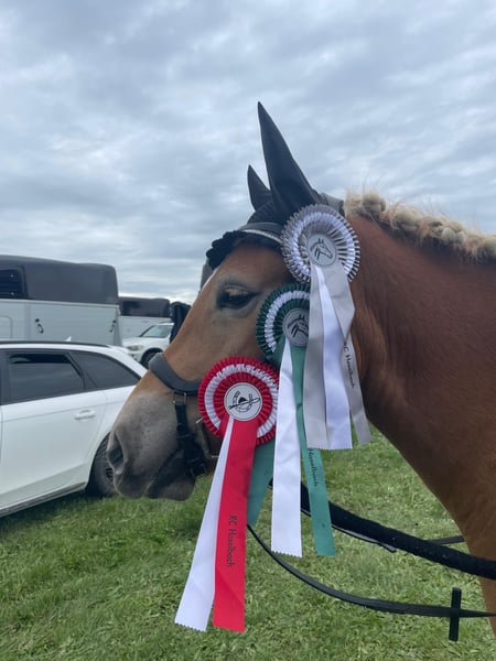 Unsere wunderbare Welcome sucht eine neue Lebensaufgabe und Menschen, die ihre Qualitäten zu schätzen wissen. Sie wurde bei uns schonend angeritten und liebevoll weiter ausgebildet. Sie ist bereits A-Dressur platziert. Ihre Leistungsprüfung absolvierte sie mit der Gesamtnote 7,55, beim Freispringen glänzte sie mit einer Wertnote von 8,5. Welcome ist super brav im Umgang, auch mit Kindern, und zeigt sich in jeder Situation verlässlich. Sie läuft barhuf, ist gesund, geimpft, entwurmt, brav beim Schmied und war bei uns nie krank oder auffällig. Sie wurde bereits im Reitunterricht und auch beim Voltigieren eingesetzt und meistert ihre Aufgaben stets ruhig und vertrauensvoll. Ob alleine oder in der Gruppe im Gelände, Welcome ist stets gelassen und motiviert. Durch ihre gute Springmanier und ihre unerschrockene Art können wir sie uns auch sehr gut in der Vielseitigkeit vorstellen. In der Herde ist sie sozial, ausgeglichen und sehr verträglich, kennt Boxenhaltung mit täglichem Weidegang ebenso wie Offenstallhaltung. Ein Pferd, das keine Wünsche offenlässt – zuverlässig, leistungsbereit und mit großem Herzen. Wir wünschen uns für sie ein liebevolles Fünf-Sterne-Zuhause, in dem sie ihre neue Lebensaufgabe findet.
