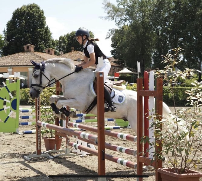 Super primo pony affidabile e senza scortesie. Facile gestione. Freddo e mai scortese. Bravo in gara e a casa. Ottimo nel lavoro in piano , professore per dressage . Esce in passeggiata solo e con altri cavalli. Sale in van senza difficoltà . Facile con maniscalco docciature e tosatura. Bravo per bambini anche piccoli. Mai scortesie in box . Accogliente verso i bambini. Campione nelle 60-80. Vinto campionato regionale CN 60 e tante soddisfazioni in dressage con punteggi alti nelle E avanzate.