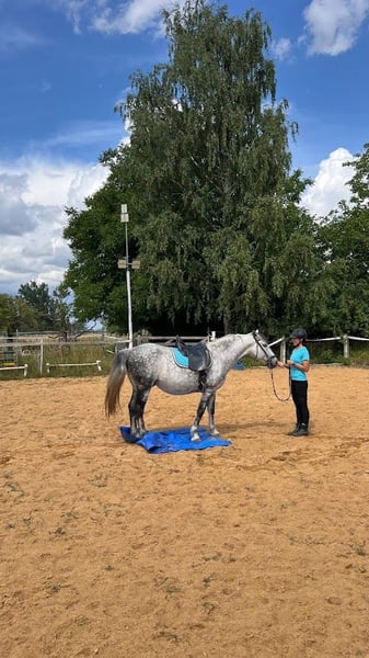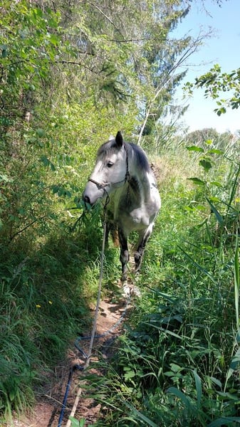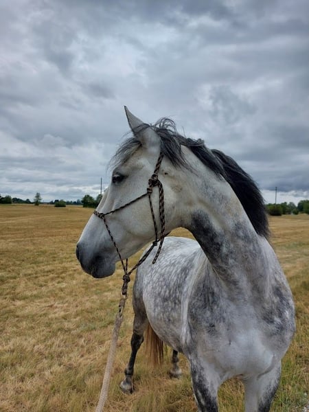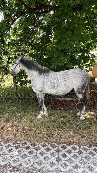 Torino is a Polish Warmblood and came to Germany at the age of 6 through a dealer from Poland. Since then, he has been in my possession and kept in a paddock. He does not know what a stall is. The main issue from the beginning has been saddle/girth anxiety, nervousness when being saddled, and "panic" when mounting. Torino needs trust in his person and a consistently fitting saddle. Currently, he is not being ridden due to a lack of time and is not being moved/gymnastized enough. After a reasonable muscle build-up, saddle adjustment, and trust in his person, he can become a riding horse again. He is not suitable as a riding horse for children! More details available via private message. He is absolutely lovable, very easy to handle (also with children), and gentle. He is curious, sensitive, but still robust, with a rather baroque/stout type and a more laid-back demeanor. He is familiar with groundwork, is a cool character, for example, unflinching with tarps, fluttering ribbons, knows the seesaw, etc. Housing: Torino has been in a paddock for 9 years with a small trail in a small mixed herd (3 geldings, 1 mare). He is low in rank, barefoot, and is fed from round feeders with a fine mesh net to prevent gulping. He is easy to keep and only spends a few hours every few days in the pasture. He does not know box confinement. Due to a change in hobby, I am now, with a heavy heart, trying to find a nice place for him where he can be more in focus. Place over price, and more details available via private message. (Saddle not included in the price but negotiable)